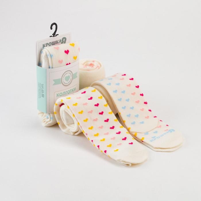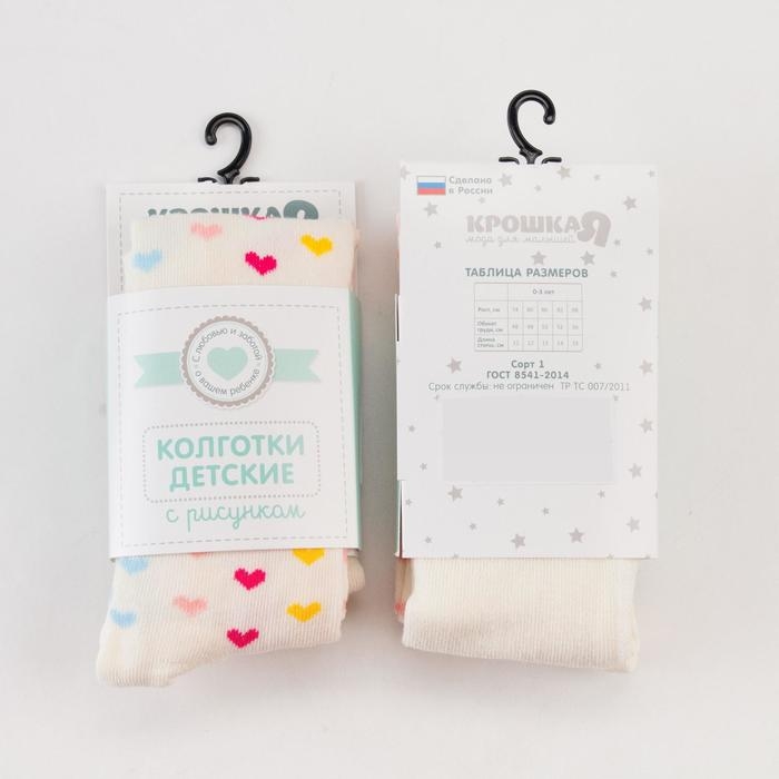 Колготки Крошка Я «Сердечки», цвет молочный, рост 68-74 см