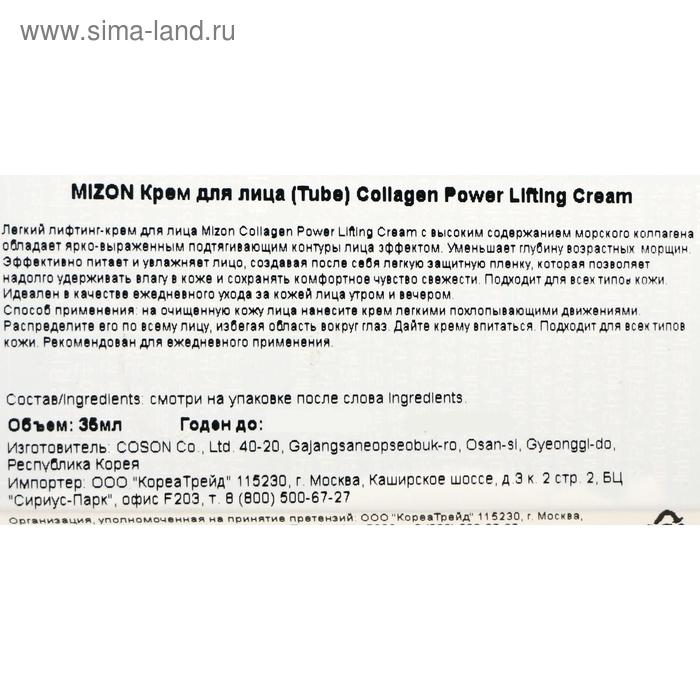 Коллагеновый лифтинг-крем для лица MIZON, 35 мл