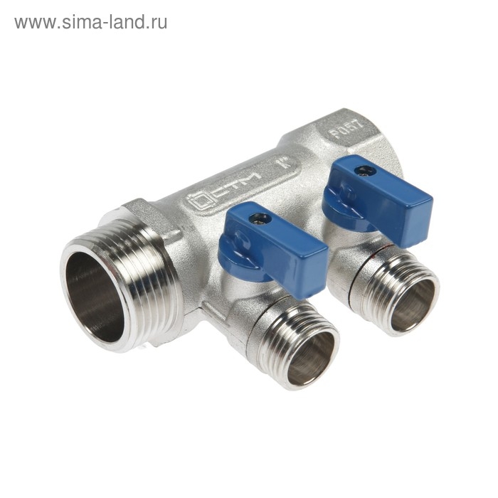 Коллектор "СТМ", 1"х1/2", наружная резьба, 2 выхода, с шаровыми кранами, никелированный