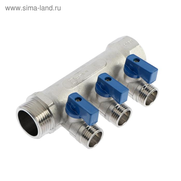 Коллектор "СТМ", 1"х1/2", наружная резьба, 3 выхода, с шаровыми кранами, никелированный