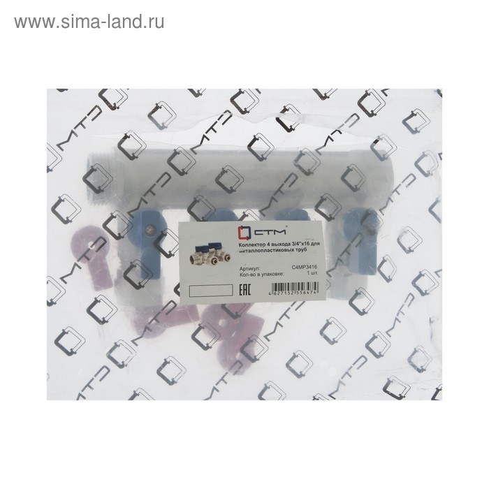Коллектор "СТМ", 3/4"х16 мм, 4 выхода, с шаровыми кранами, для м/п труб, никелированный