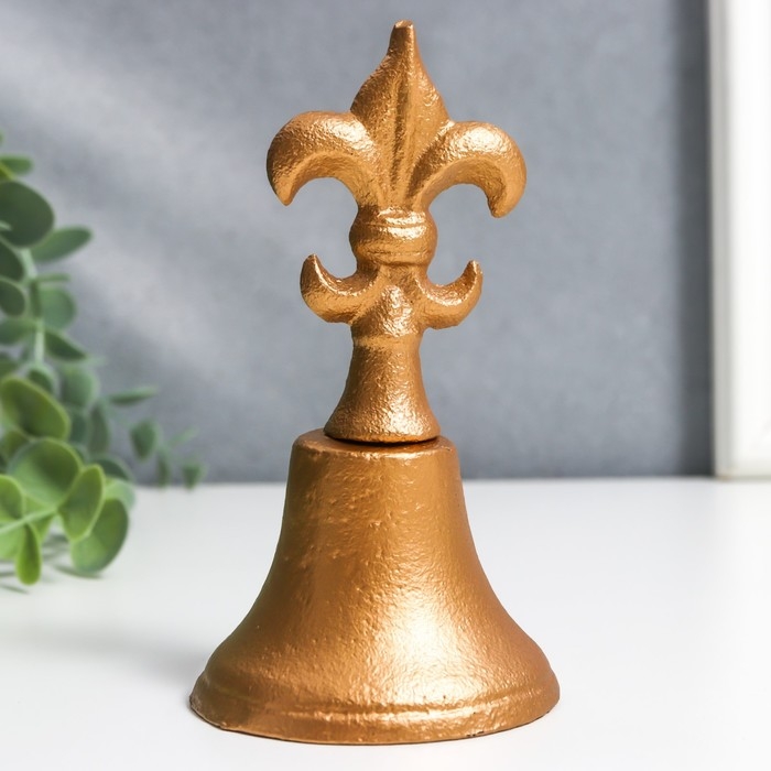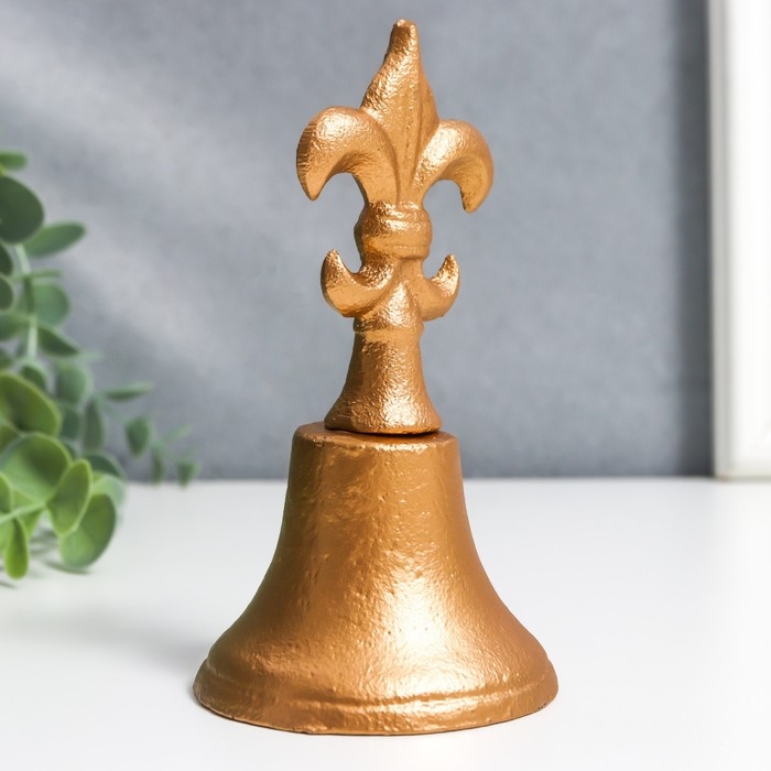 Колокол сувенирный чугун "Геральдическая лилия" золото 13х7х7 см