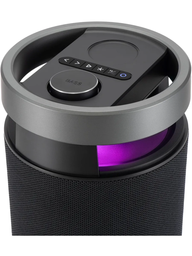 C пятью мощными динамиками, эта беспроводная колонка PartyBox обеспечивает великолепный звук на 360 градусов с мощностью от 90 Вт. Четыре широкополосных динамика на 2.5" дюйма расположены по радиусу колонки и создают красивое объемное стерео-звучание, большой низкочастотный динамик на 5.25" дюйма расположен внизу и придает звучанию дополнительную насыщенность и глубину.