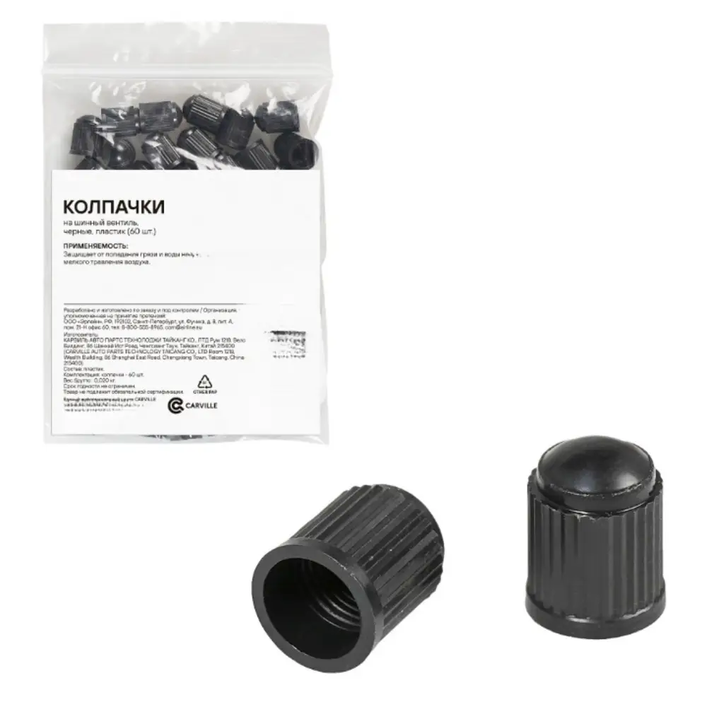 Колпачки на шинный вентиль, черные, пластик (60 шт.)