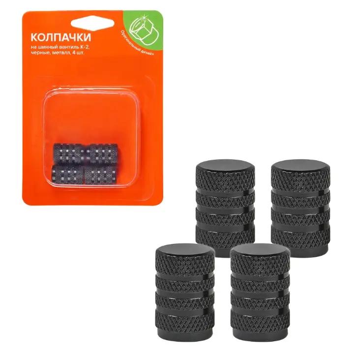 Колпачки на шинный вентиль K-2, черные, металл, 4 шт