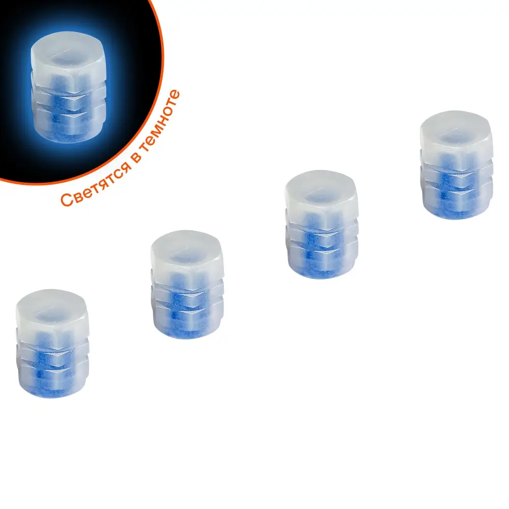 Колпачки на шинный вентиль S-1, светящиеся, синие, 4 шт