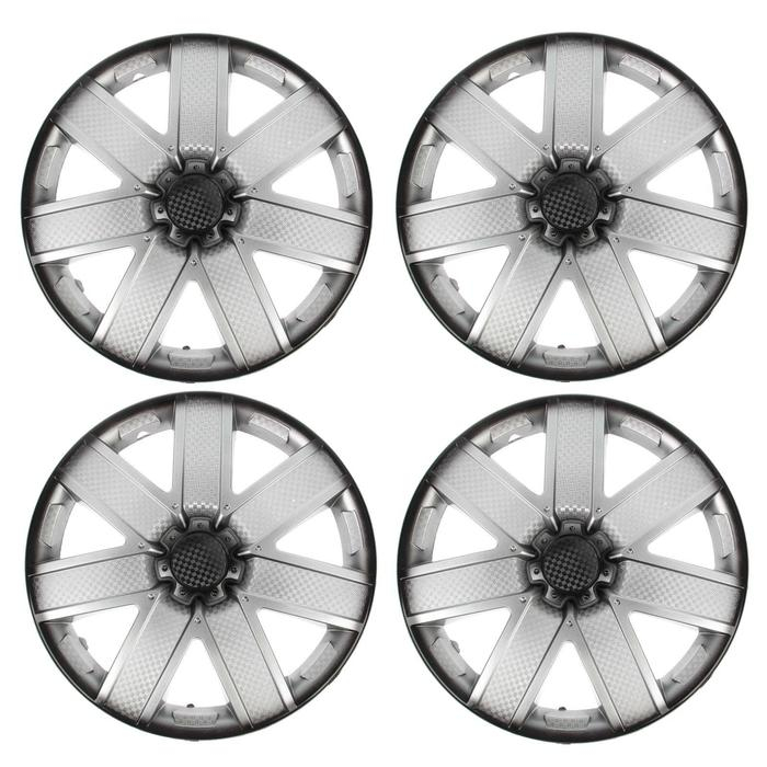 Колпаки колесные R13 "ГАЛАКСИ", серебристо-черный карбон, набор 4 шт.