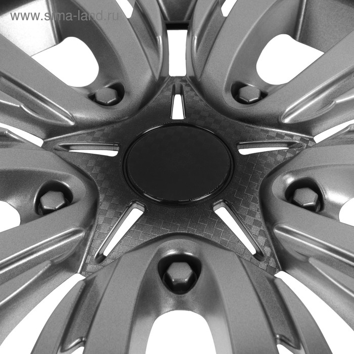 Колпаки колесные R13 "ЛИОН", серебристо-черный карбон, набор 4 шт