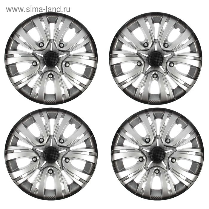 Колпаки колесные R14 "ЛИОН", серебристо-черный карбон, набор 4 шт.