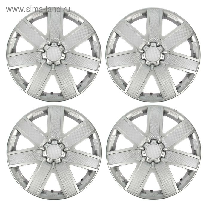 Колпаки колесные R15 "ГАЛАКСИ", серебристый карбон, набор 4 шт.