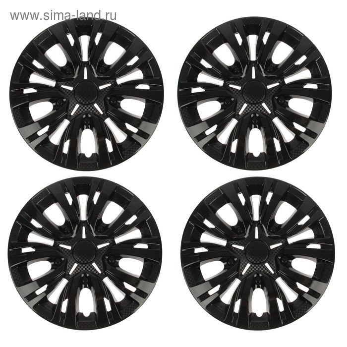 Колпаки колесные R15 "ЛИОН", черный глянец карбон, набор 4 шт.