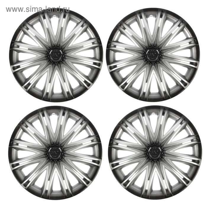Колпаки колесные R15 "СКАЙ", серебристо-черный, набор 4 шт.