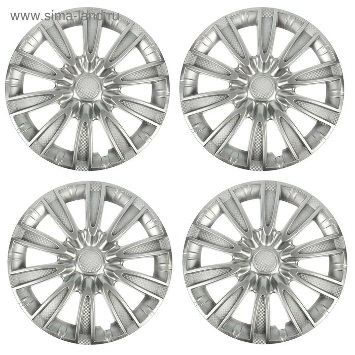 Колпаки колесные R15 "ТОРНАДО", серебристый карбон, набор 4 шт