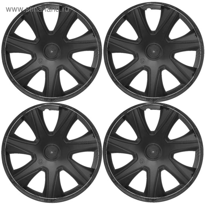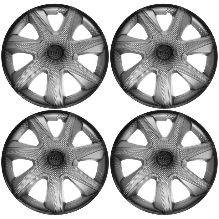 Колпаки колесные R16 "ДЖОЙ ",серебристо-черный, карбон, набор 4 шт