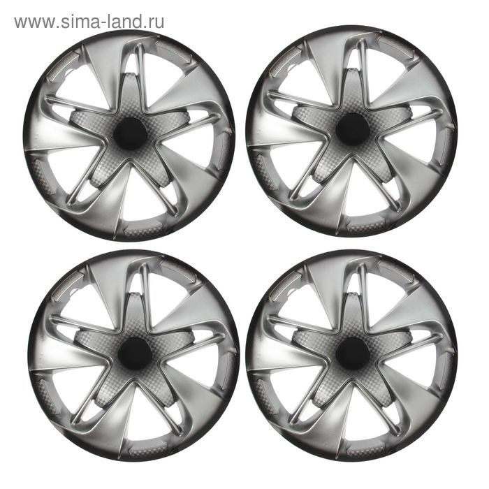 Колпаки колесные R16 "СУПЕР АСТРА", серебристо-черный карбон, набор 4 шт