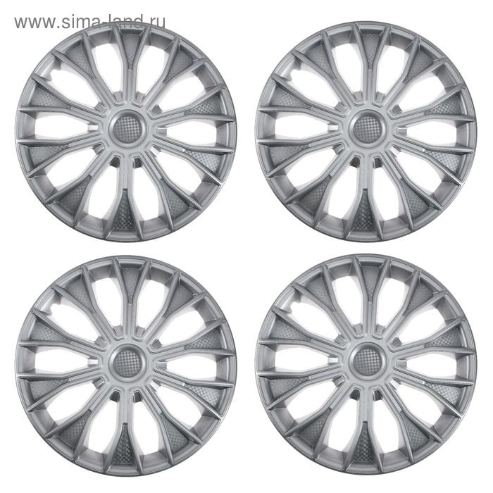 Колпаки колесные R16 "ВОЛТЕК", серебристый, карбон, набор 4 шт