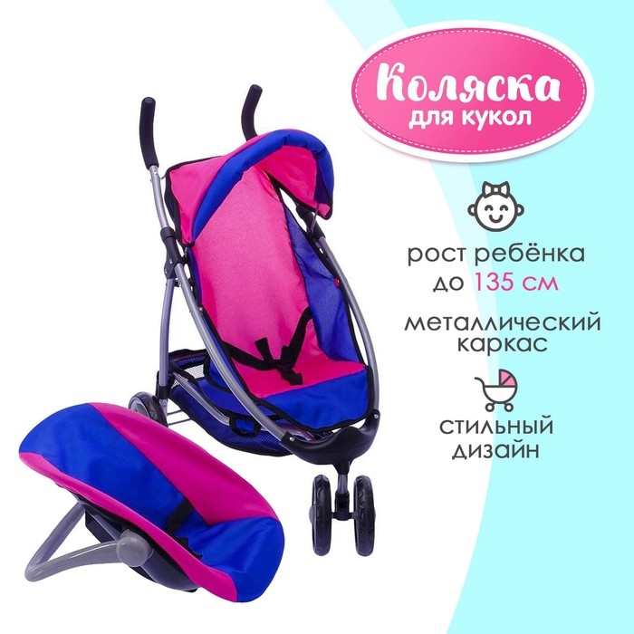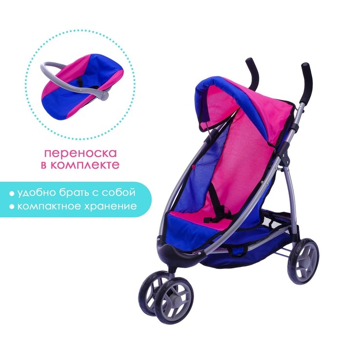 Коляска для кукол, с переноской, трёхколёсная, металлический каркас