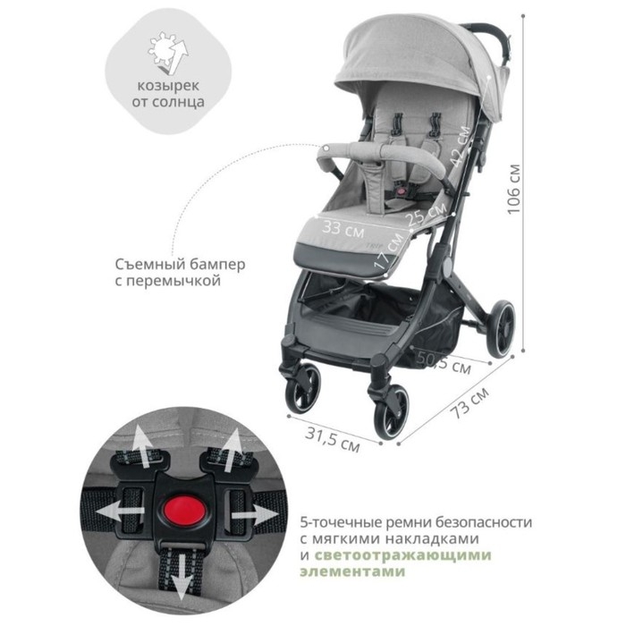 Коляска прогулочная детская Indigo TRIP, цвет серый