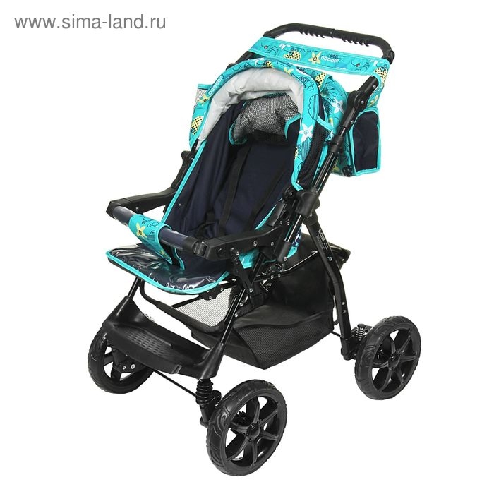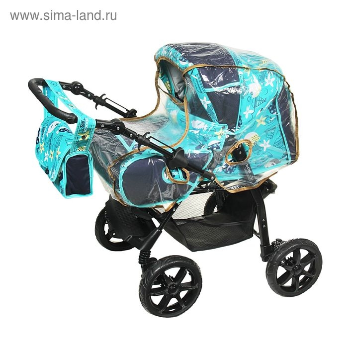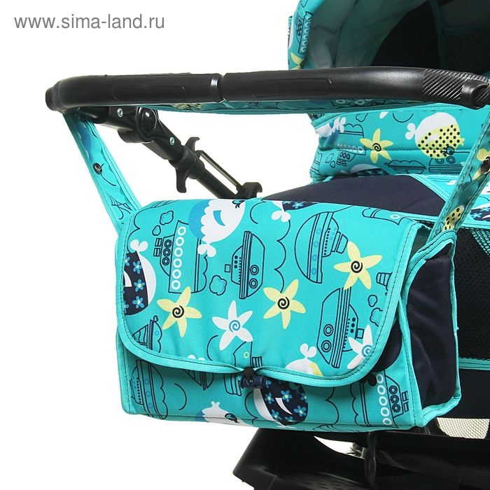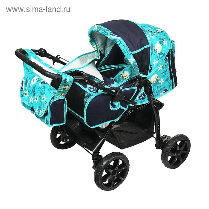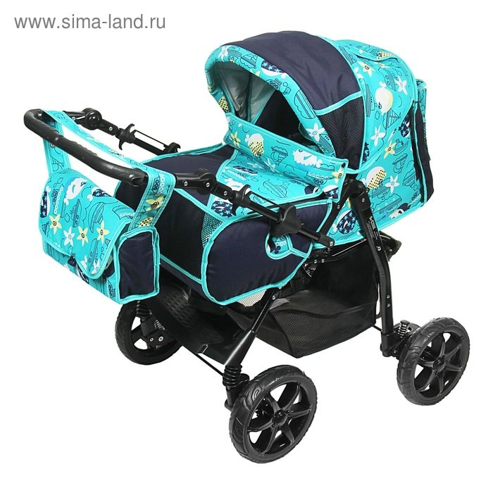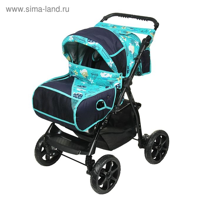 Коляска-трансформер «Гном», пластиковые колёса, оттенки бирюзового, рисунок МИКС