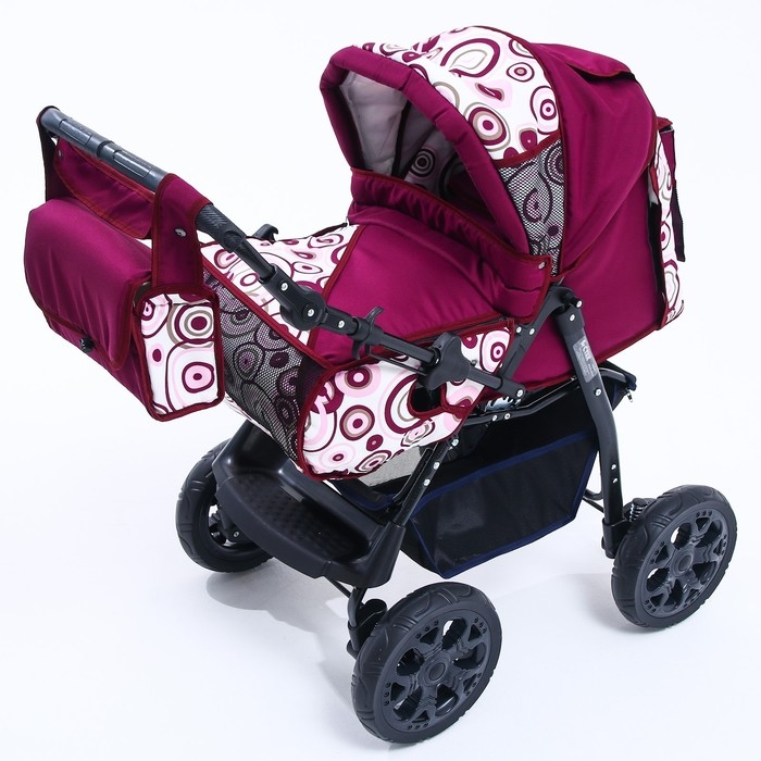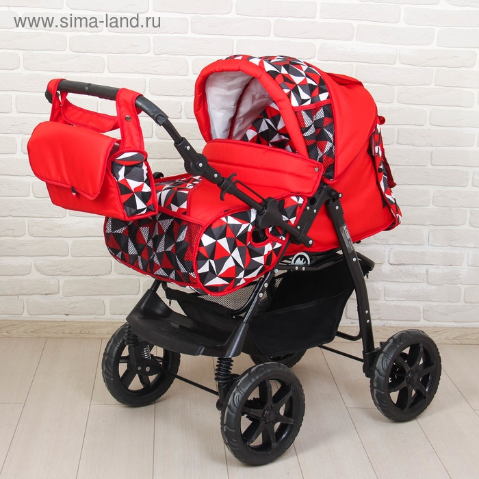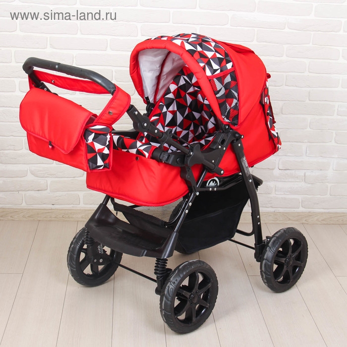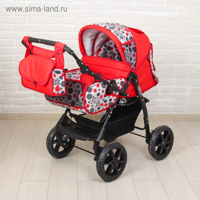 Коляска-трансформер «Гном», пластиковые колёса, оттенки красного, рисунок МИКС