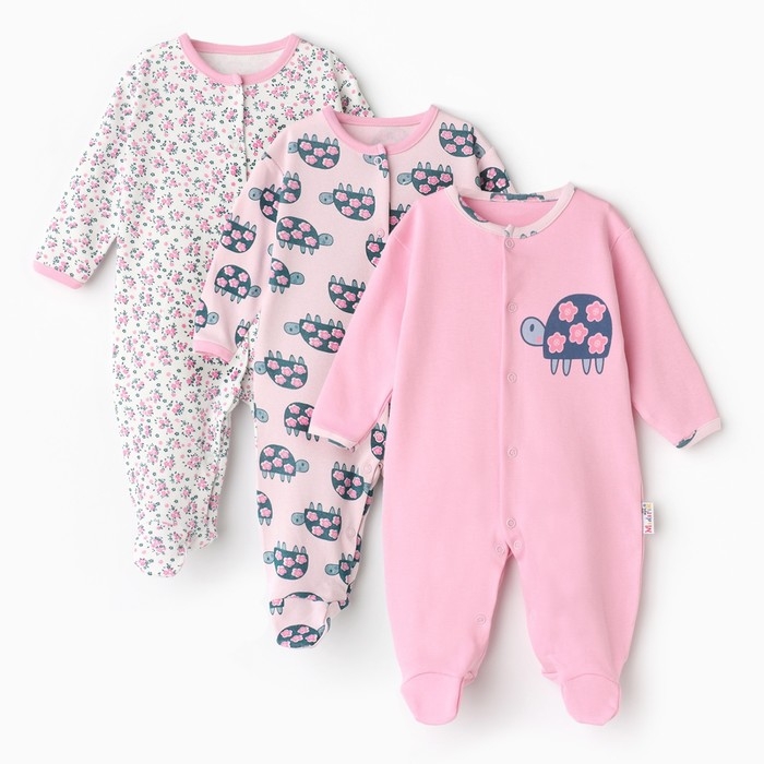 Комбинезон детский (3 шт.), цвет белый/розовый/светло-розовый, рост 74 см