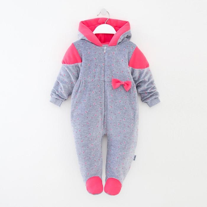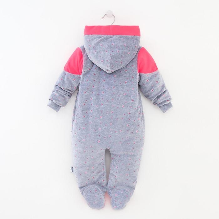 Комбинезон утеплённый, цвет серо-розовый, рост 68 см