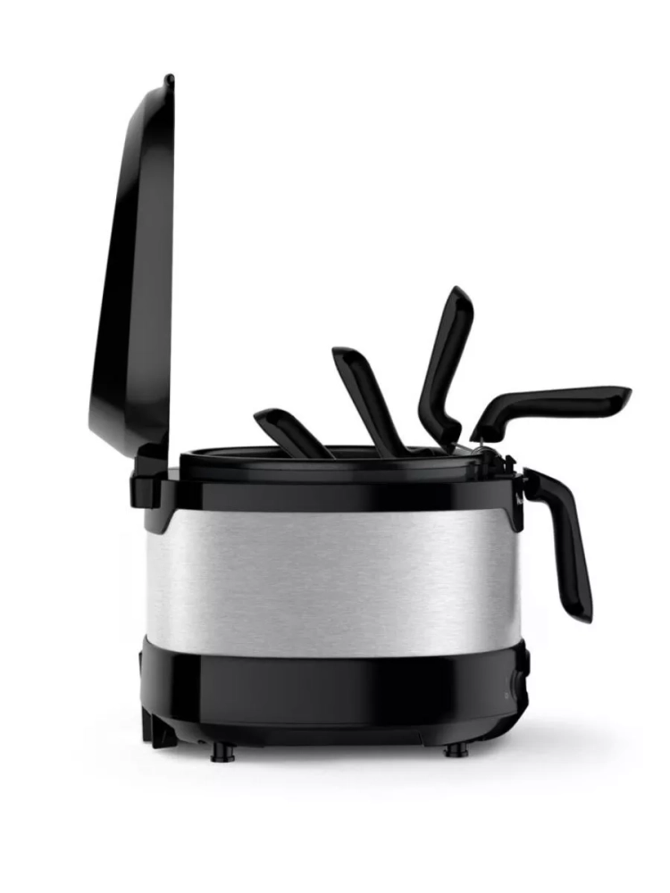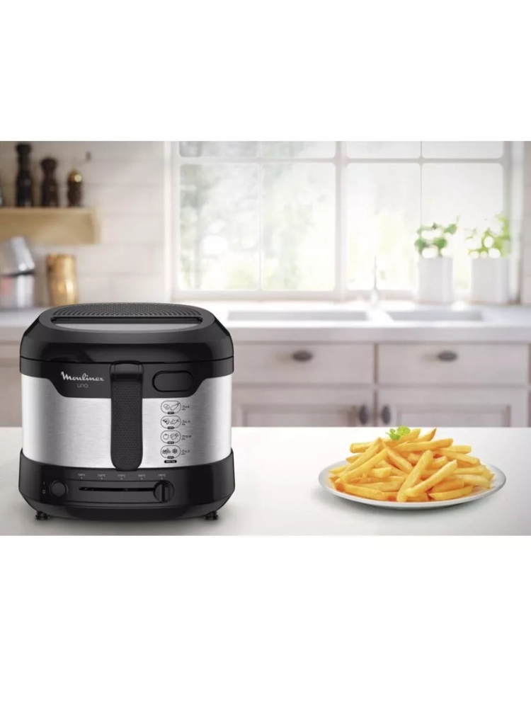 Фритюрница Moulinex Fry Uno AF215D10: компактная и вместительная фритюрница для всей семьи. Больше свободного пространства и новых блюд! Moulinex Uno – это компактная электрическая фритюрница с большой и вместительной чашей, рассчитанной на 1 кг продуктов или 4 порции любимого блюда.