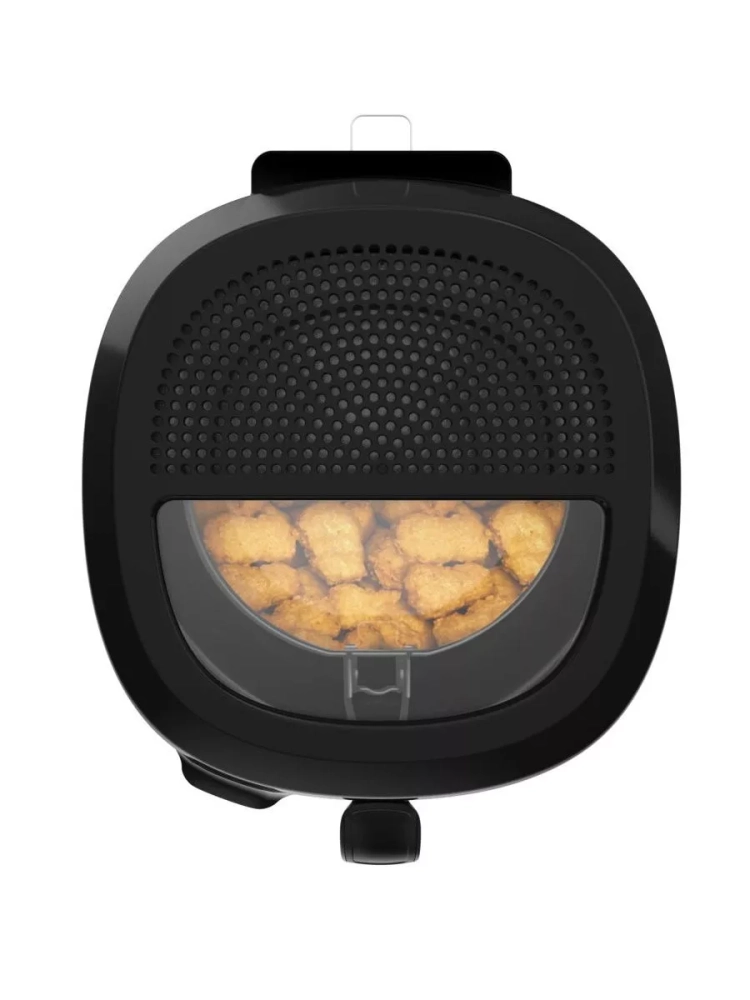 Фритюрница выполнена в элегантном компактном корпусе со складной ручкой и занимает совсем немного места на кухонном столе и в шкафчике. Сверху расположено большое окно, через которое удобно наблюдать за процессом приготовления.