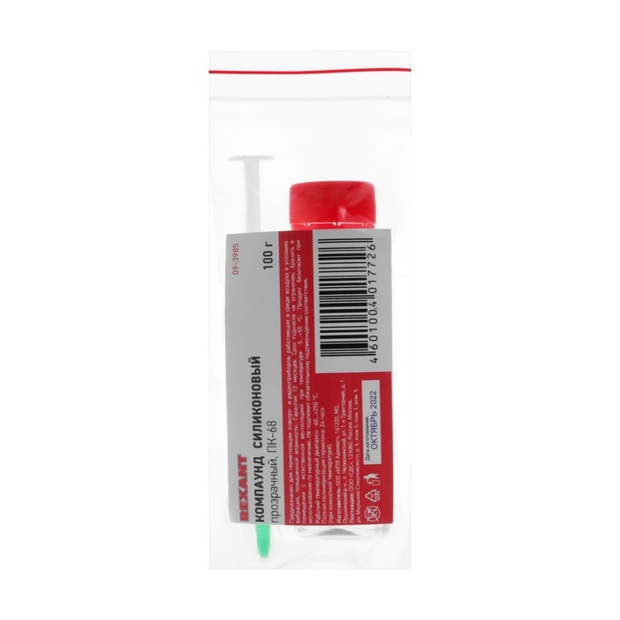 Компаунд силиконовый, прозрачный ПК-68 (двухкомпонентный) 100 гр REXANT предназначен для герметизации электро- и радиоприборов, работающих в среде воздуха в условиях вибрации, повышенной влажности в температурном интервале –60...+250 °C. Двухкомпонентный компаунд представляет собой пастообразный материал, обладающий способностью при смешивании с катализатором вулканизоваться при температуре окружающей среды, переходя в резиноподобное состояние. Силиконовый двухкомпонентный компаунд получен на основе низкомолекулярного диметилсилоксанового каучука.