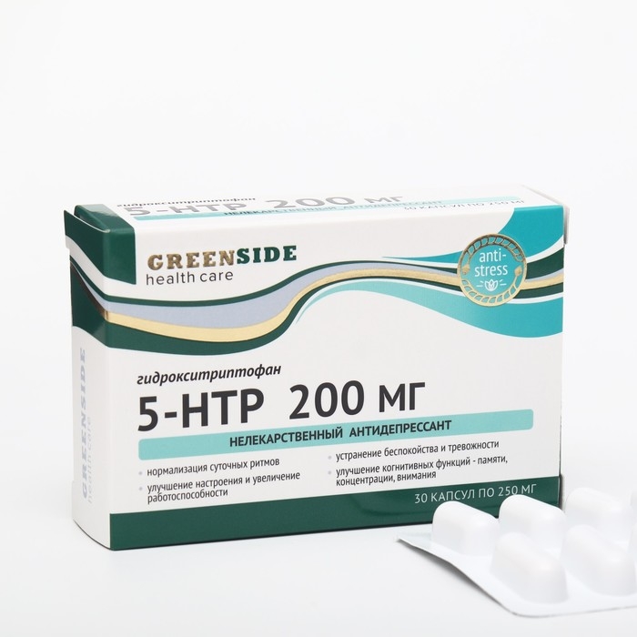 Комплекс 5-гидрокситриптофан 5-НТР 200 мг натуральный антидепрессант, успокоительное для взрослых, для похудения., 30 капсул по 250 мг