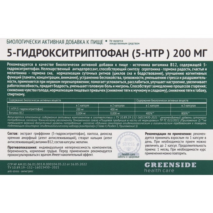 5-HTP (5-гидрокситриптофан) - 200 мг