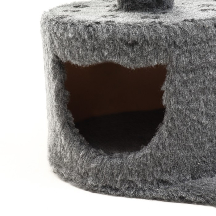 Домик для кошек с когтеточкой "Круглый с площадкой", 52 х 52 х 95 см, серый