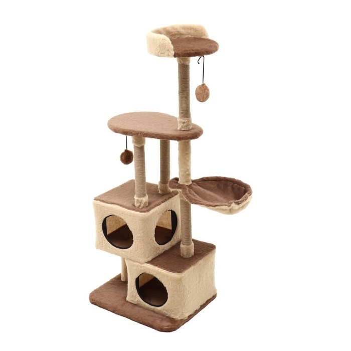 Комплекс для кошек с когтеточкой, разборный, 3-х уровневый, 80 х 42 х 139 см, бежевый