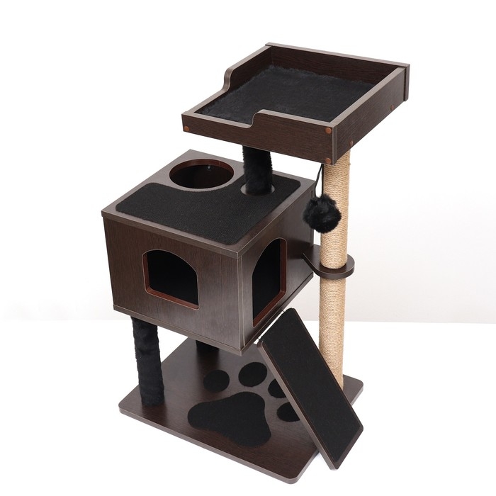 Комплекс для кошек с когтеточкой, с домиком, 58 х 54 х 87см, ЛДСП, цвет венге