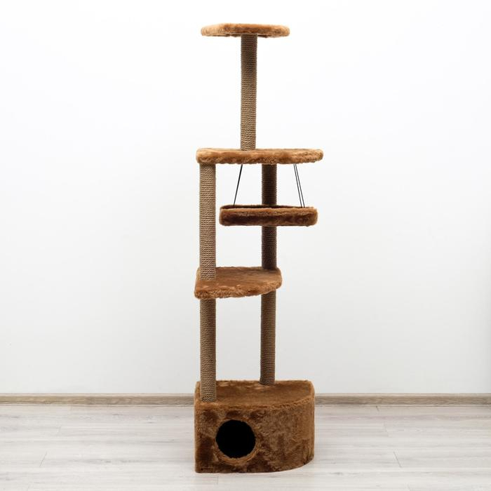 Комплекс для кошек с когтеточкой, угловой, 48 х 48 х 171 см, коричневый