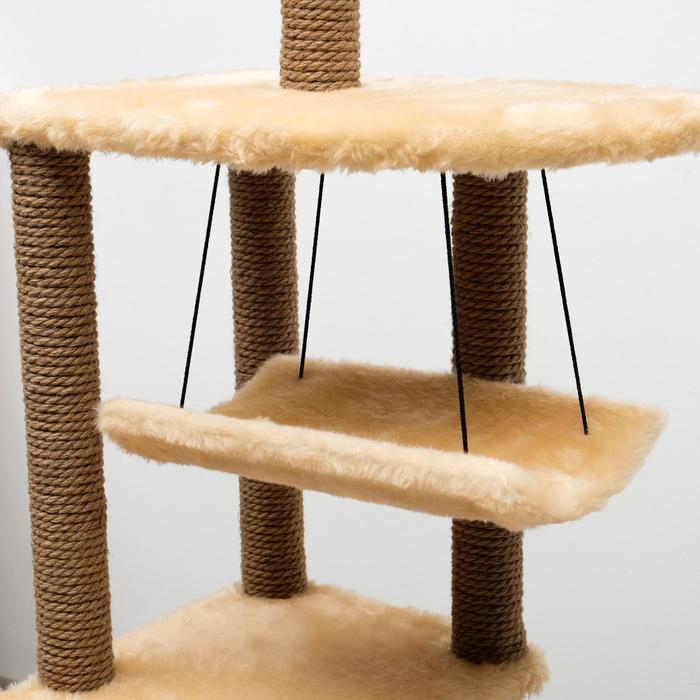 Комплекс для кошек с когтеточкой, угловой, с гамаком, 48 х 48 х 171 см, джут, искусственный мех, беж