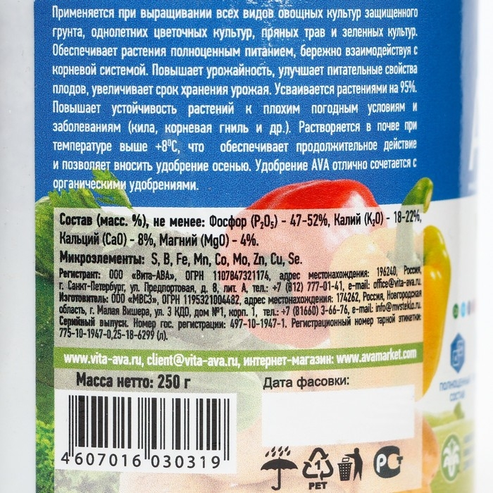 Комплексное минеральное удобрение "AVA", Универсал, порошок, банка, 250 г