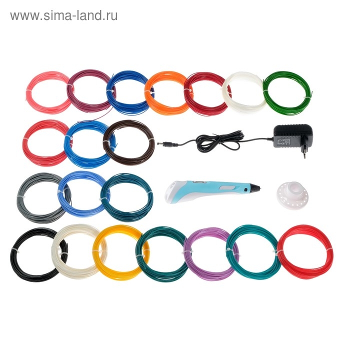 Комплект 3Д ручка с дисплеем голубая + пластик ABS 20 цветов по 10 метров