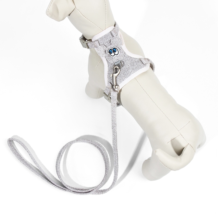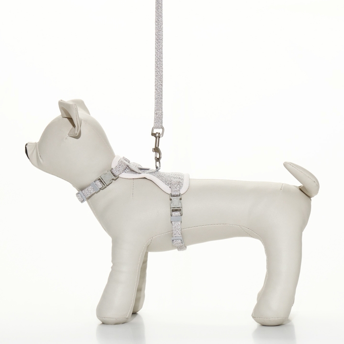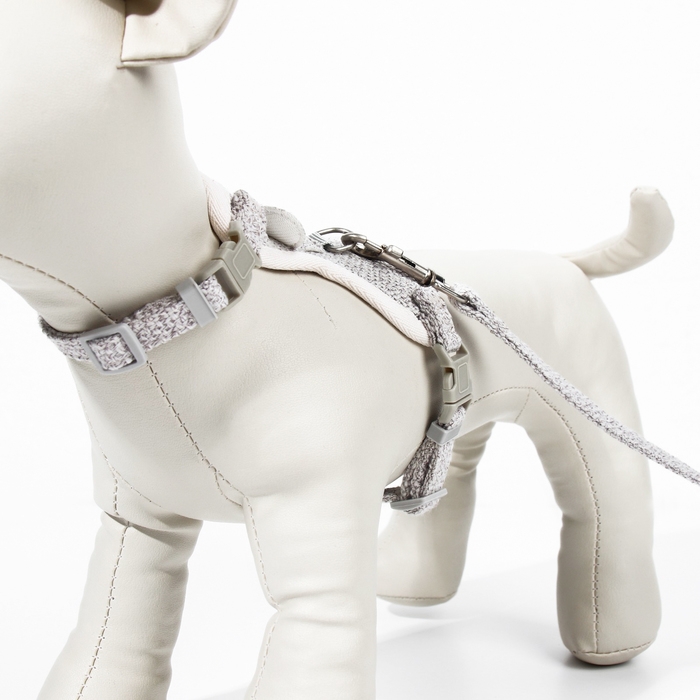 Комплект амуниции "Мышка" с мягкой шлейкой, поводок 120 х 1 см, ОШ 18-22 см, ОГ 24-30 см, серый