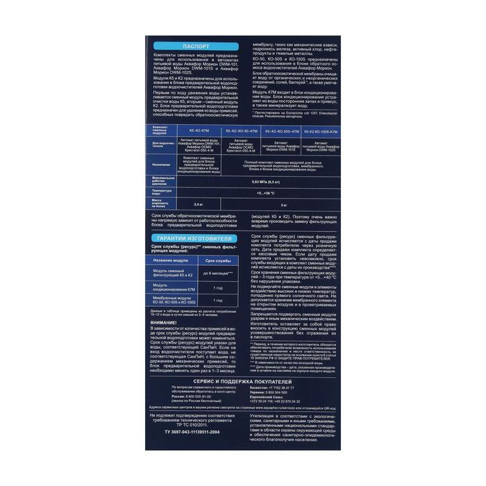 Комплект сменных картриджей для "Аквафор" ОСМО, К5-К2-КО-100S-К7М, фильтрующий