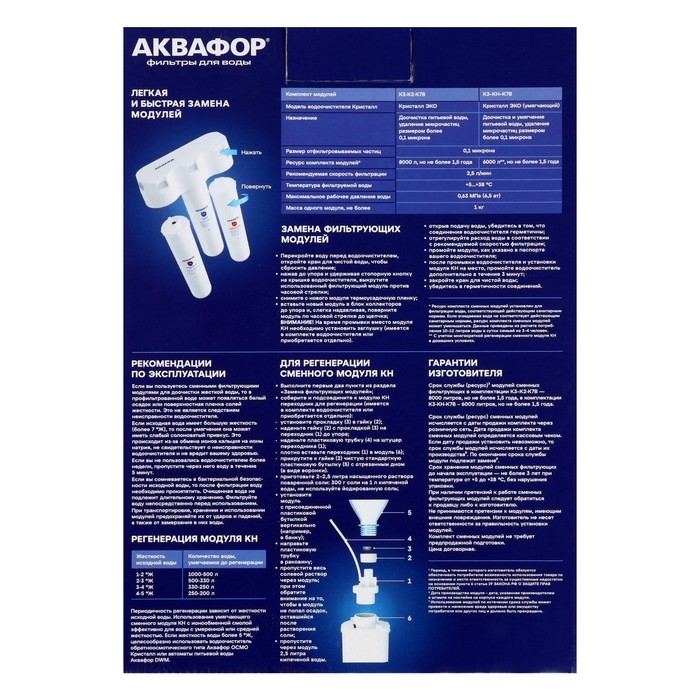Комплект сменных картриджей для фильтра "Аквафор" Кристалл ЭКО, К3-К2-К7В