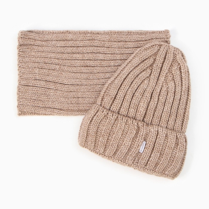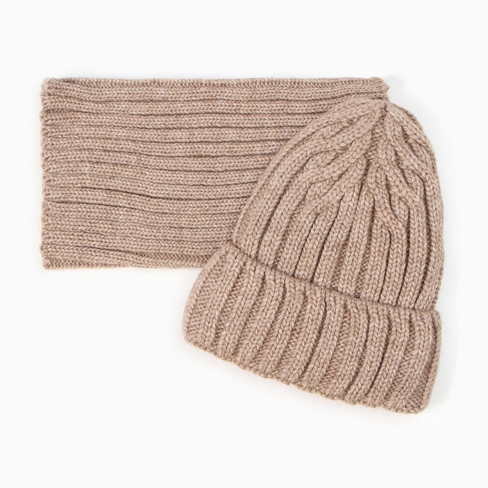 Комплект детский (шапка, снуд), цвет бежевый, размер 54-56