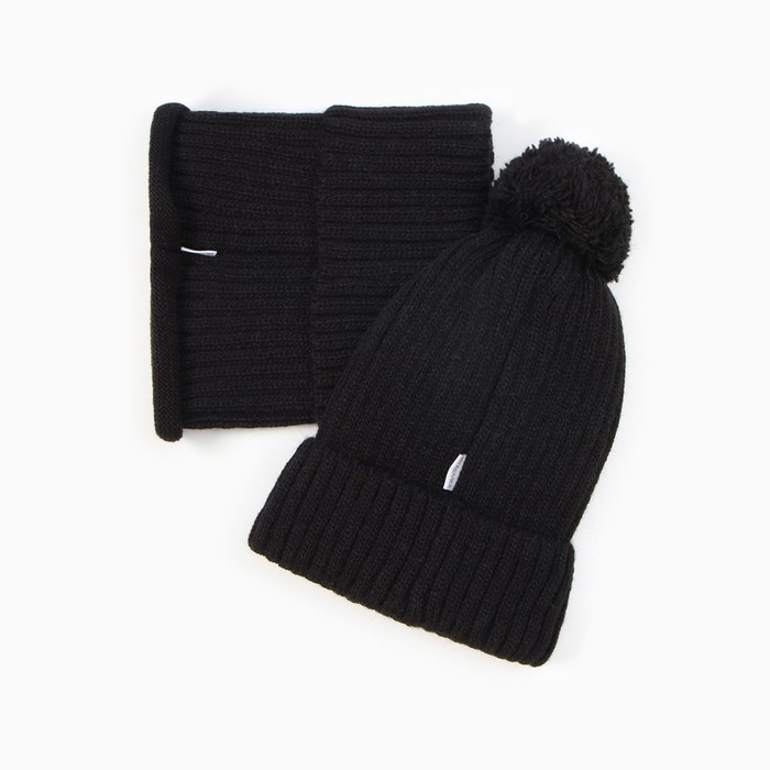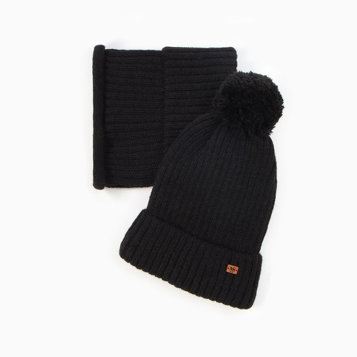 Комплект детский (шапка, снуд), цвет черный, размер 52-54