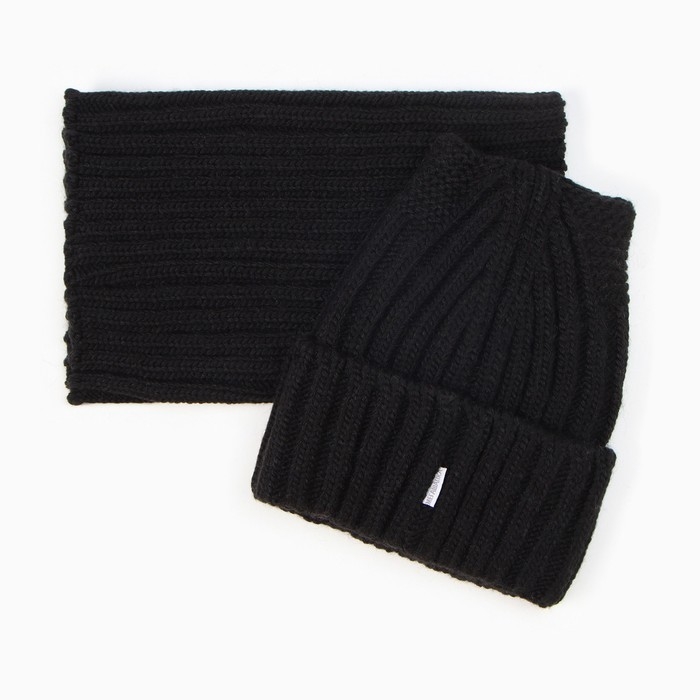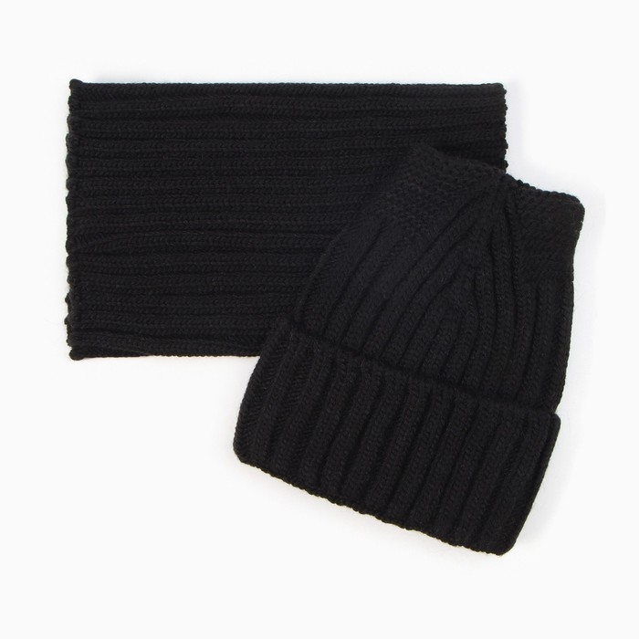 Комплект детский (шапка, снуд), цвет черный, размер 52-54