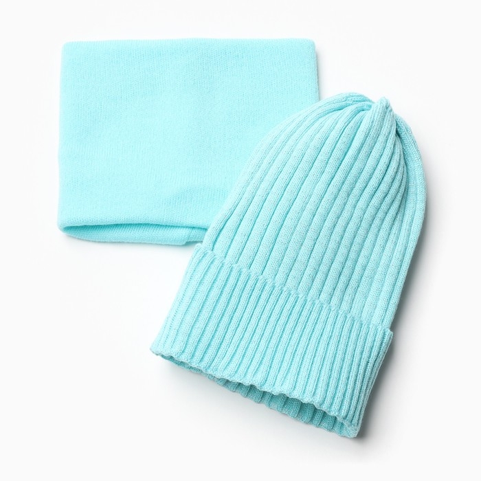 Комплект детский (шапка, снуд), цвет мятный, размер 48-52