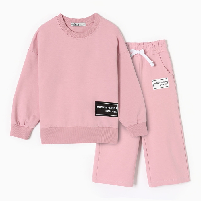 Комплект для девочек (свитшот, брюки), цвет грязно-розовый, рост 116 см