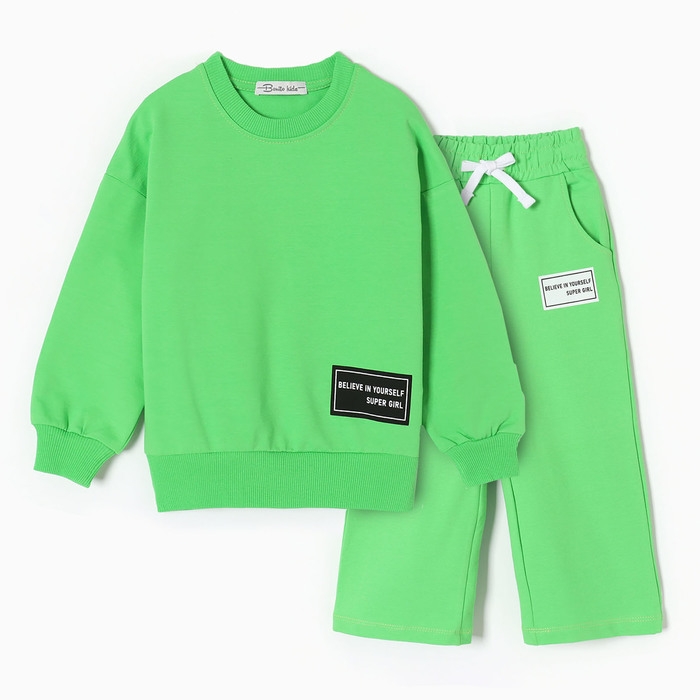 Комплект для девочек (свитшот, брюки), цвет салатовый, рост 122 см