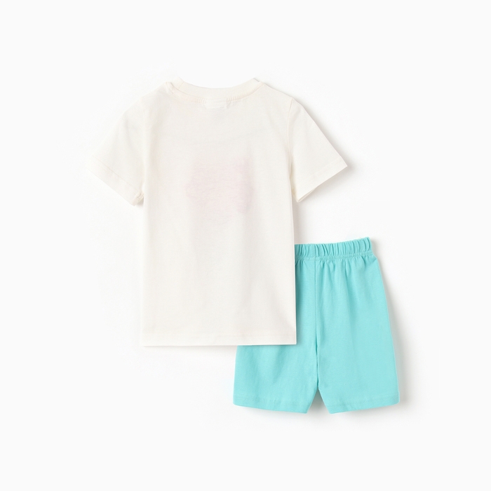 Комплект для девочки "Девочка" (футболка/шорты), цвет молочный/бирюзовый, рост 98-104 см