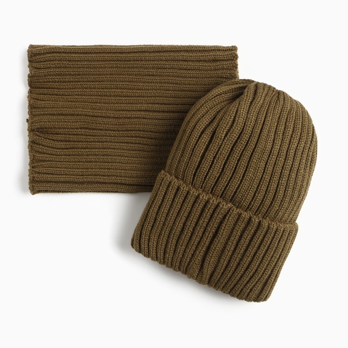 Комплект для девочки (шапка, снуд), цвет хаки, размер 50-54