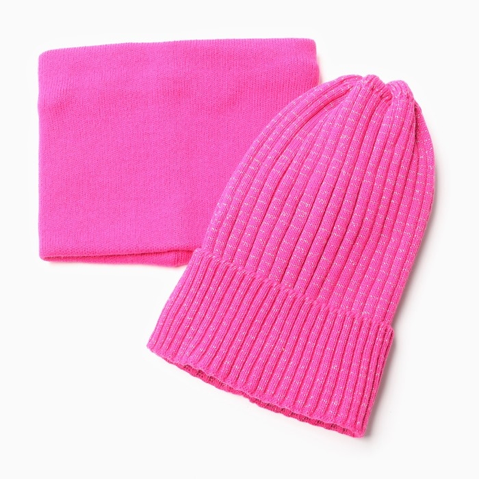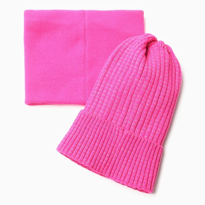 Комплект для девочки (шапка, снуд), цвет малиновый, размер 48-52